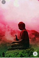 Boeddha met rode achtergrond